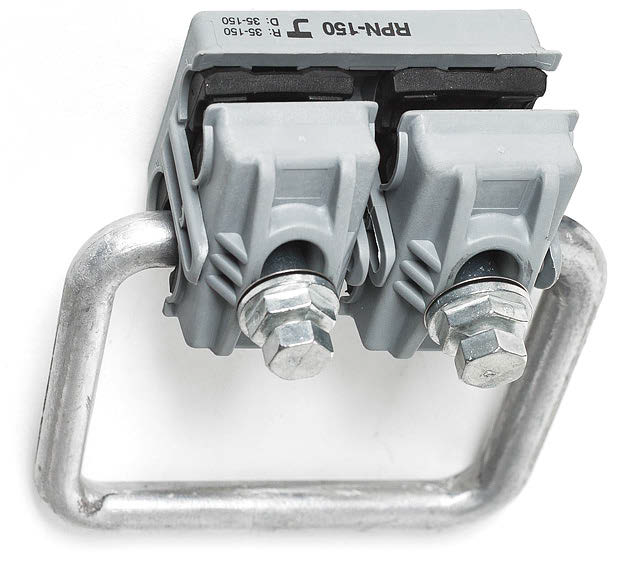 Применяется для наложения оперативного переносного заземления на время выполнения ремонтных работ, на линиях с применением защищенных проводов СИП 3. RPN 150+D для напряжений ВЛ 6-10кВ. RDP 240+D для напряжений ВЛ 20кВ. Состоит из герметичного прокалывающего зажима RPN 150/ RDP 240 и скобы D, изготовленной из коррозионностойкого алюминиевого сплава.